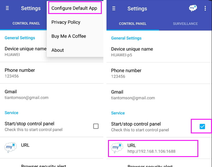 - Click menu ‘Start/stop control panel’ to start working.