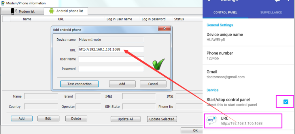 Attention: Please enable WIFI on Android phone then SMS Deliverer is able to connect android phone by local intranet IP address.