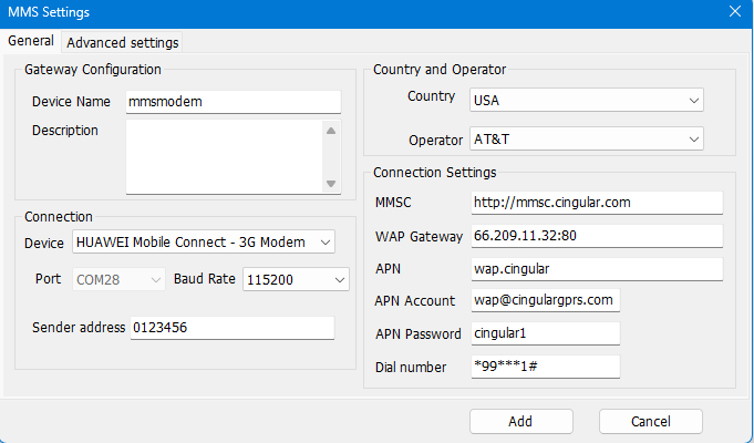 3. Choose correct country and carrier name then click button ‘Add’ then you may compose a MMS to send.