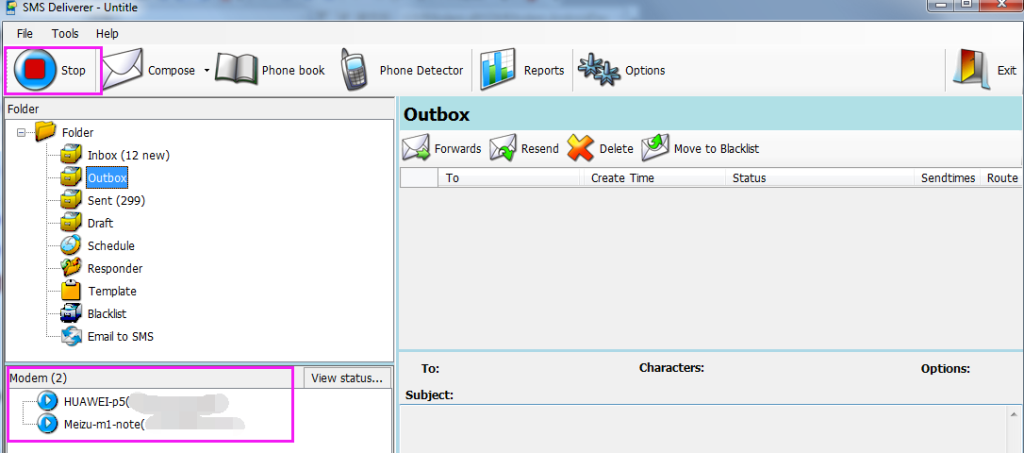 2. Switch to SMS Deliverer click button ‘Phone detector’ to add a MMS modem.