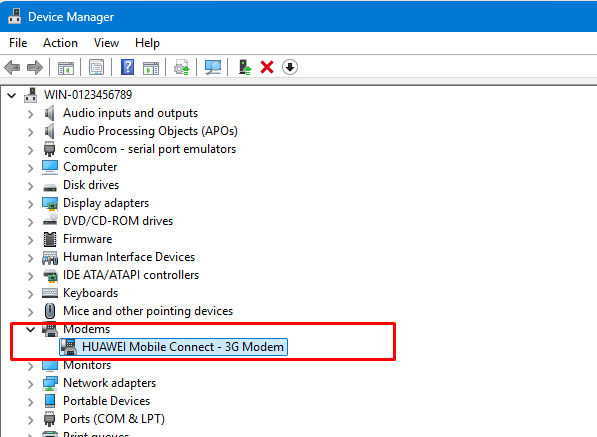 1.Connect a modem to PC and make sure the driver is installed correctly, if everything are good, the modem will be listed in Windows device manager-> modems section