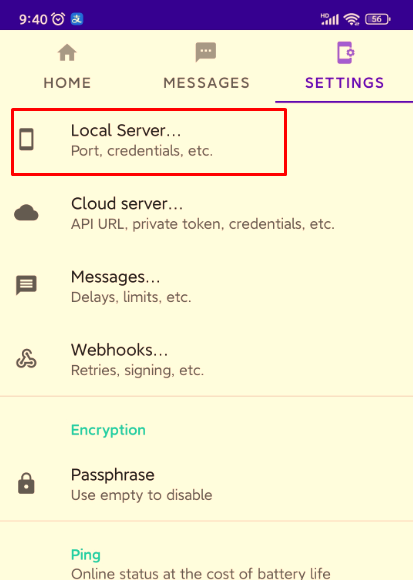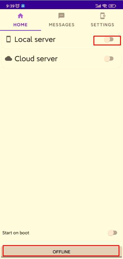 3. Tap 'Local server' then tap 'Offline' to sart working.