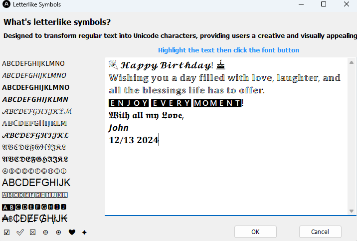 Stylized Text utilizes unique Unicode character sets to give your messages a distinctive visual flair. This feature is designed for businesses looking to highlight special promotions, brand names, or seasonal greetings, making your text stand out in a crowded inbox through creative typography.